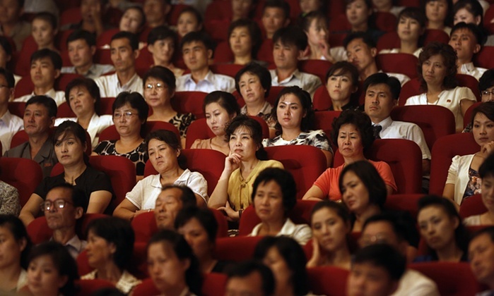Hãng thông tấn trung ương Triều Tiên (KCNA) chiếu cảnh khán giả chăm chú lắng nghe ban nhạc rock đến từ Slovenia trình diễn. Chuyến lưu diễn tại Bình Nhưỡng có tên Ngày Giải phóng. Ảnh: Dita Alangkara/AP