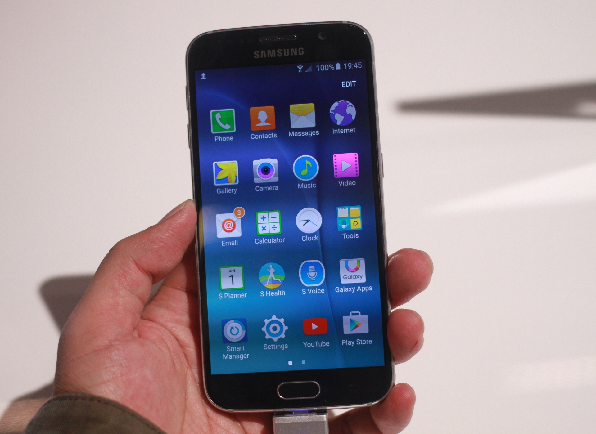 | Galaxy S6 vẫn có màn hình 2,5D với mép viền hơi cong nhẹ, nhưng chưa rõ ràng. |