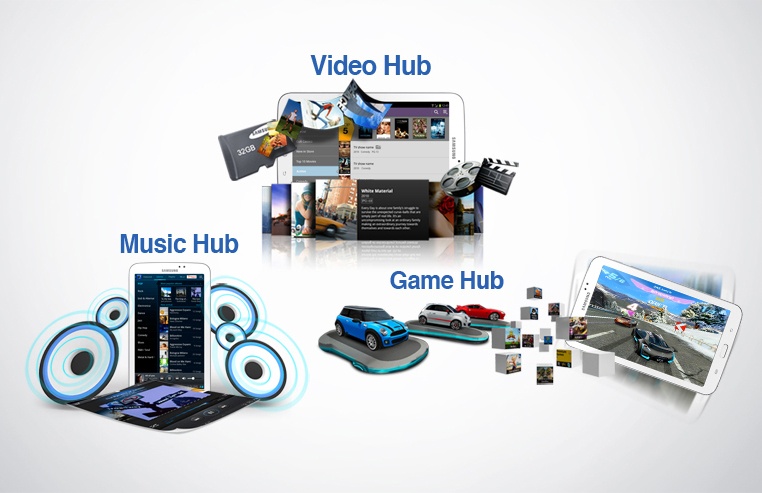 Khả năng quản lý đa phương tiện và giải trí cũng là một thế mạnh ở Galaxy Tab 3. Ứng dụng Story Album cho phép sắp xếp và chú thích hình ảnh trong một album ảnh theo phong cách cá nhân rất thú vị. Ứng dụng Music riêng của giao diện TouchWiz phục vụ tốt nhu cầu âm nhạc với khả năng giả lập hiệu ứng âm thanh 7.1. Bên cạnh đó, các ứng dụng đa phương tiện đều hỗ trợ DLNA cho phép tải và hiển thị nội dung từ máy chủ lưu trữ thông qua mạng Wi-Fi nội bộ.
