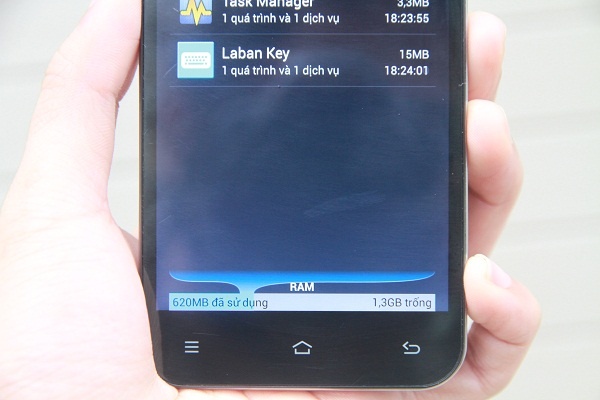 | Ở trạng thái chờ với các ứng dụng chạy nền, máy còn đến hơn 1,3 GB trống. |