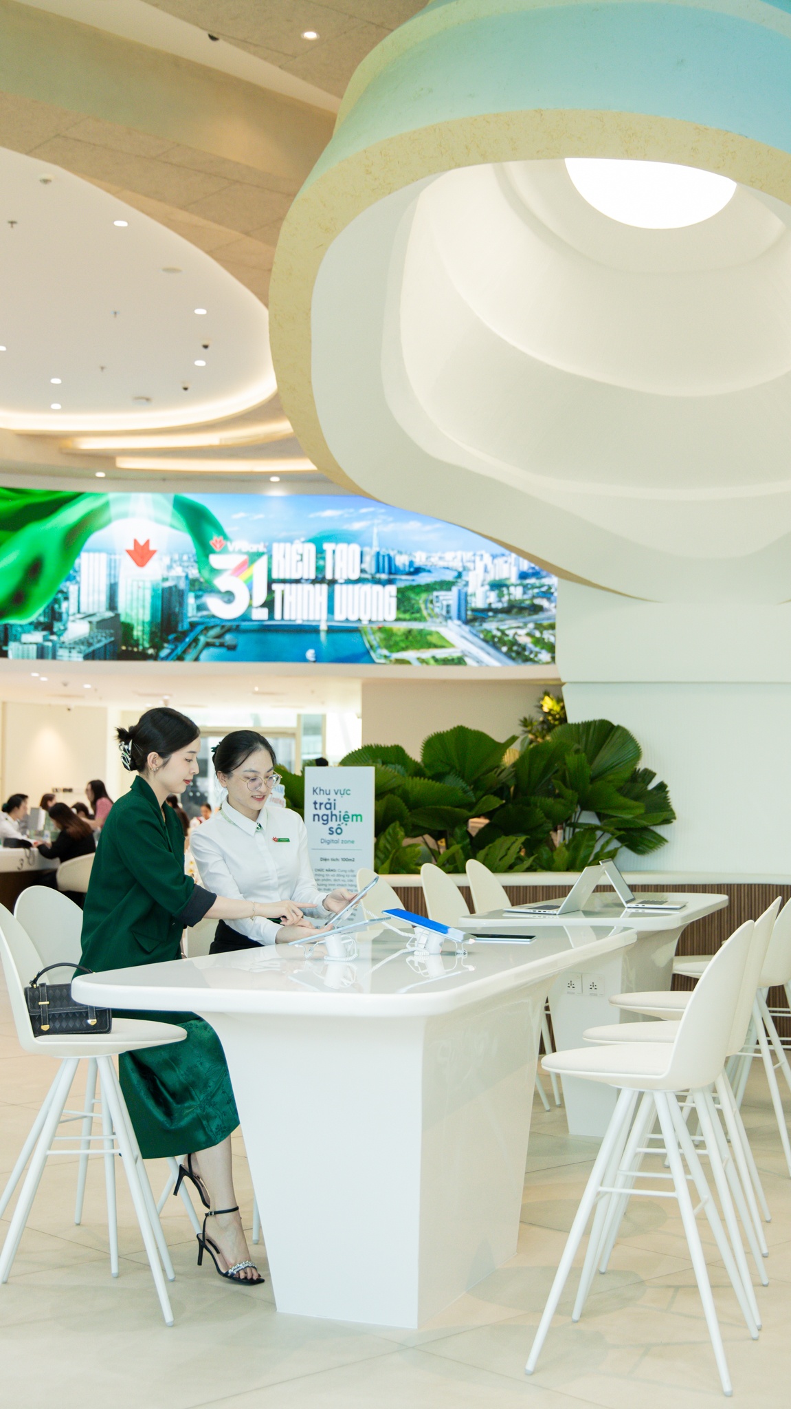 | Tại đây còn có khu vực Digital Zone, nơi tôi có thể truy cập để tìm hiểu và xem thông tin, trải nghiệm sản phẩm hoặc đăng ký các sản phẩm dịch vụ, tiện ích, ưu đãi của ngân hàng. |