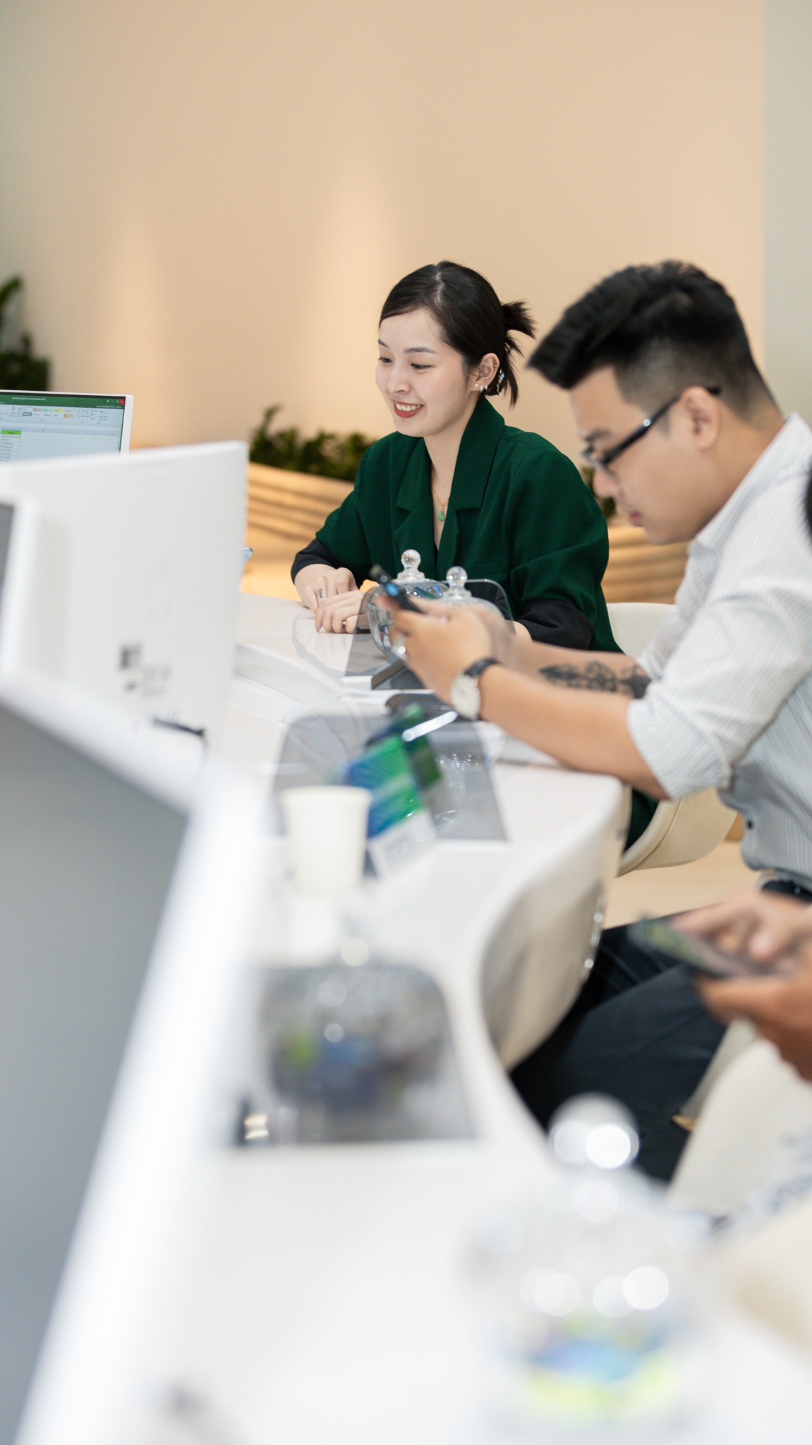 | Điểm tôi thích nhất ở chi nhánh flagship VPBank - cũng là lý do tôi chuyển sang giao dịch tại chi nhánh này - là có thể thực hiện đầy đủ giao dịch mà không cần sử dụng giấy tờ. |