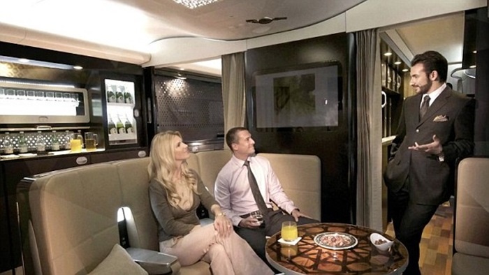 6. Ăn uống: Trên máy bay của Eitihad, các bữa ăn cũng đuợc chuẩn bị chu đáo. Khách có thể lựa chọn trong thực đơn phong phú, trong đó có trứng caviar siêu đắt hoặc đặt các món theo mong muốn của bạn. |