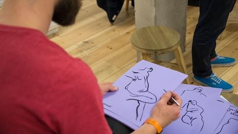 | Họa sĩ Kyle Platts tại dự án "Khỏa thân để được vẽ" ở London. Ảnh: BBC |