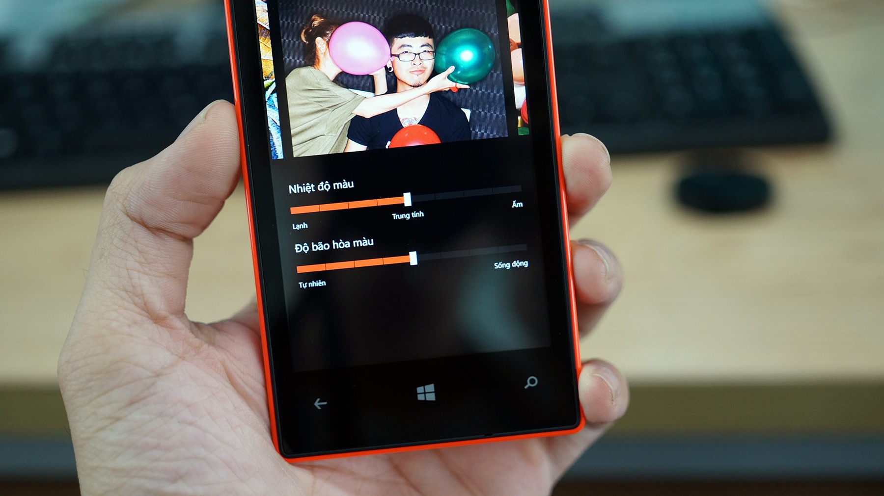 | Một đặc điểm khá thú vị của Lumia 525 là máy hỗ trợ người dùng cân chỉnh lại màu sắc của màn hình sao cho vừa mắt nhất theo tone Lạnh - ấm và độ bão hòa màu từ tự nhiên cho đến gam màu sống động. Tính năng này có sẵn trên máy nhờ bản cập nhật Windows Phone 8 Black. |
