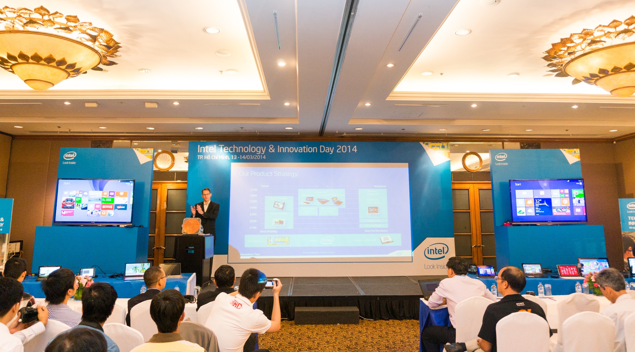 | Sự kiện mang tên Intel Technology and Innovation Day là màn trình diễn hiệu năng của hơn 32 thiết bị di động, máy tính bao gồm: máy tính bảng, các thiết bị 2-trong-1, camera RealSense 3D, UltrabookTM, AIO, máy tính xách tay và notebook. Đây là sự kiện đầu tiên được tổ chức tại Việt Nam, giúp cộng đồng yêu công nghệ Việt Nam được trải nghiệm thực tế các sản phẩm mới nhất, được quan tâm rất nhiều trong 2 sự kiện lớn CES 2014 (Triển lãm Điện tử tiêu dùng 2014) và MWC 2014 (Hội nghị Di động Thế giới 2014) vừa qua. |