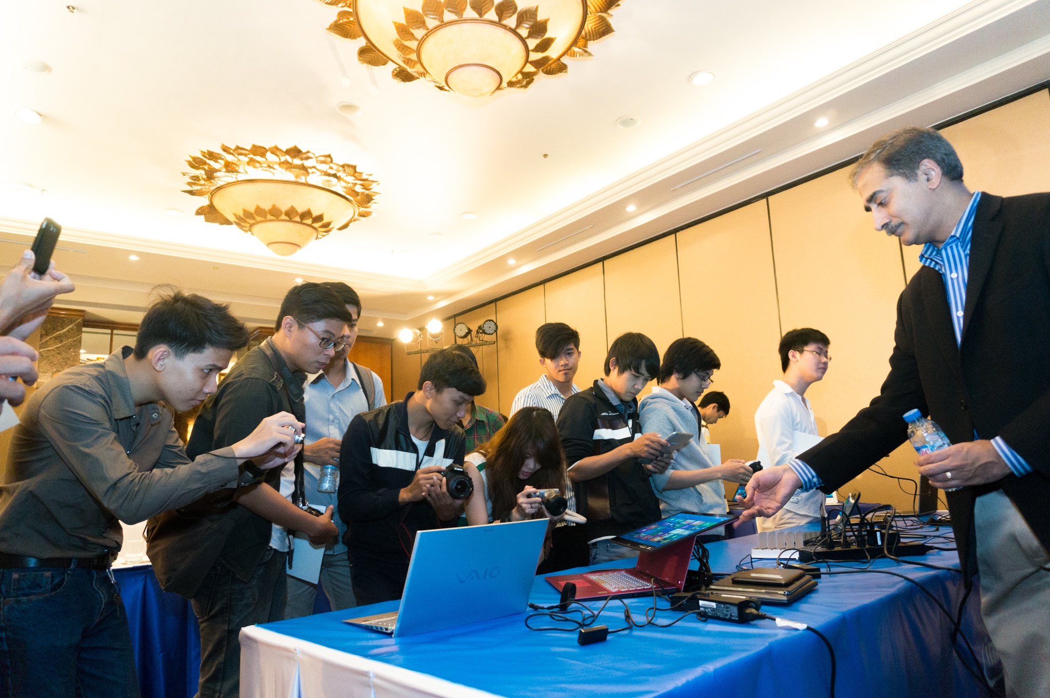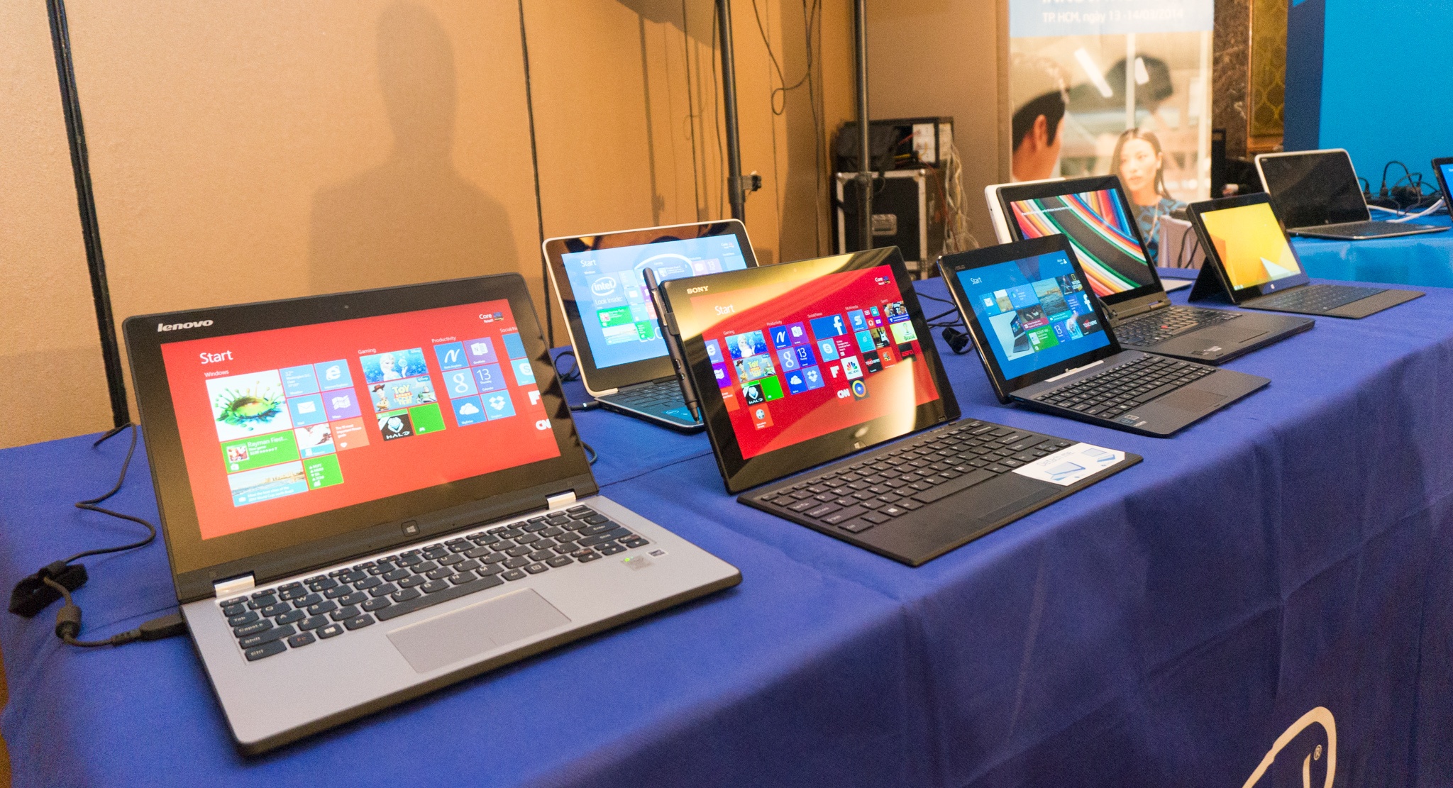 | Những thiết bị có mặt tại sự kiện đa phần là máy tính xách tay và máy tính bảng. |