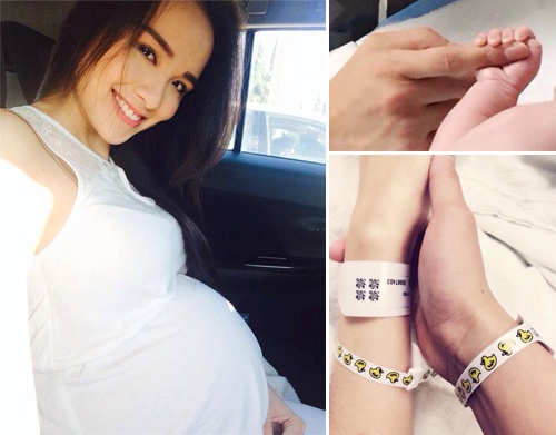| Diễm Hương ghi lại khoảnh khắc đón con trai chào đời. |