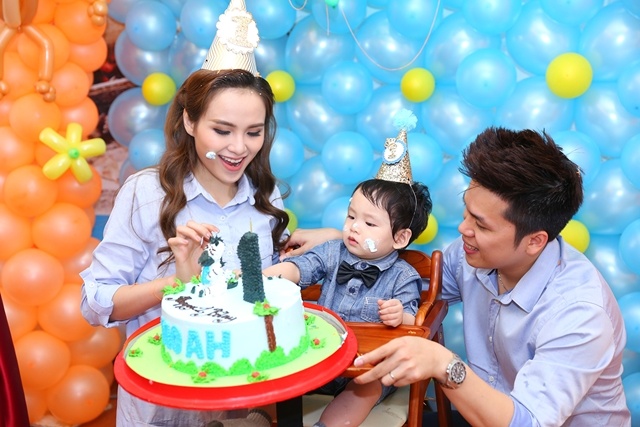Những tháng đầu đời, Diễm Hương cũng đăng ảnh con trai lên trang cá nhân nhưng không để lộ mặt.