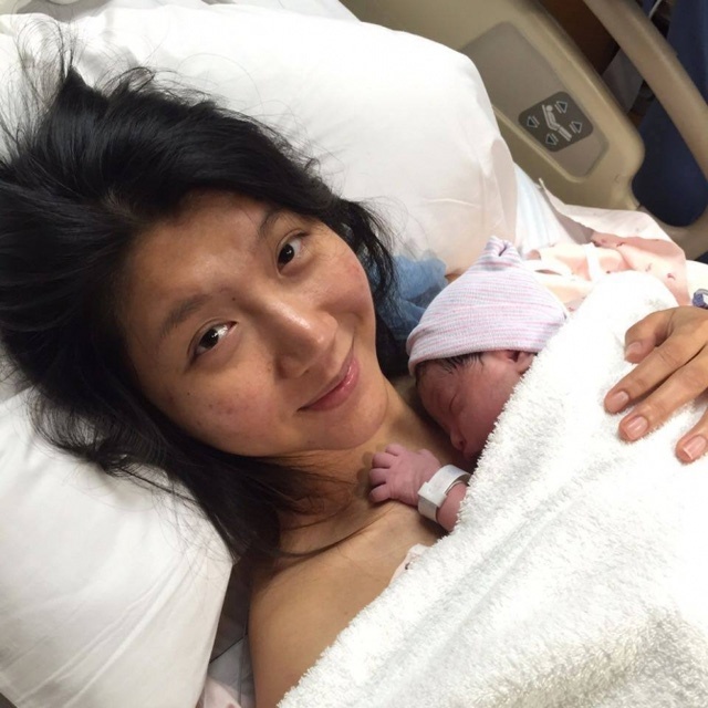 Chiều tối ngày 5/1, cô có dấu hiệu trở dạ và được ông xã đưa vào bệnh viện Orange Coast, California, Mỹ.