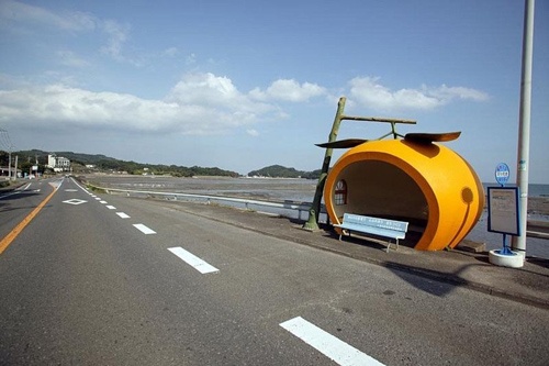 | Trạm chờ xe bus hình trái dưa hấu. |