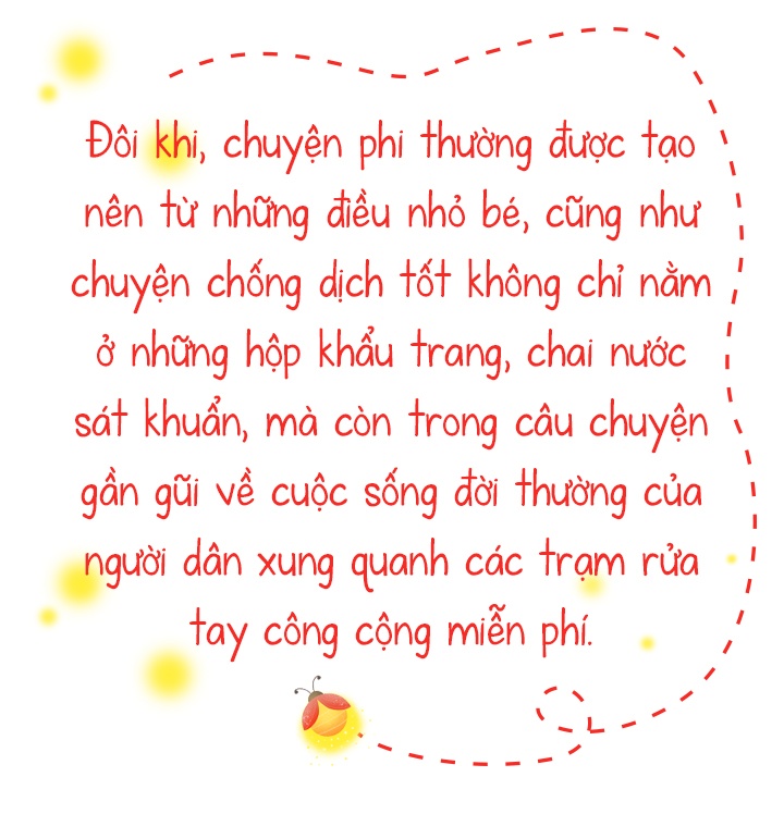 Như những câu chuyện kể thường kết thúc có hậu, thì đến một ngày, nỗi lắng lo cũng nhường chỗ cho niềm lạc quan nảy mầm. Ngày trạm rửa tay dã chiến màu đỏ dựng lên giữa bến xe, những người dân lao động nơi đây xem chừng phấn khởi lắm. Anh xe ôm có thể rửa tay sạch sẽ sau mỗi cuốc xe, chú tài xế giờ đây đã có đủ combo phòng dịch “không khô tay” đúng như ước muốn, cô bán hàng, chị soát vé cũng tự tin hơn những lúc đi làm.