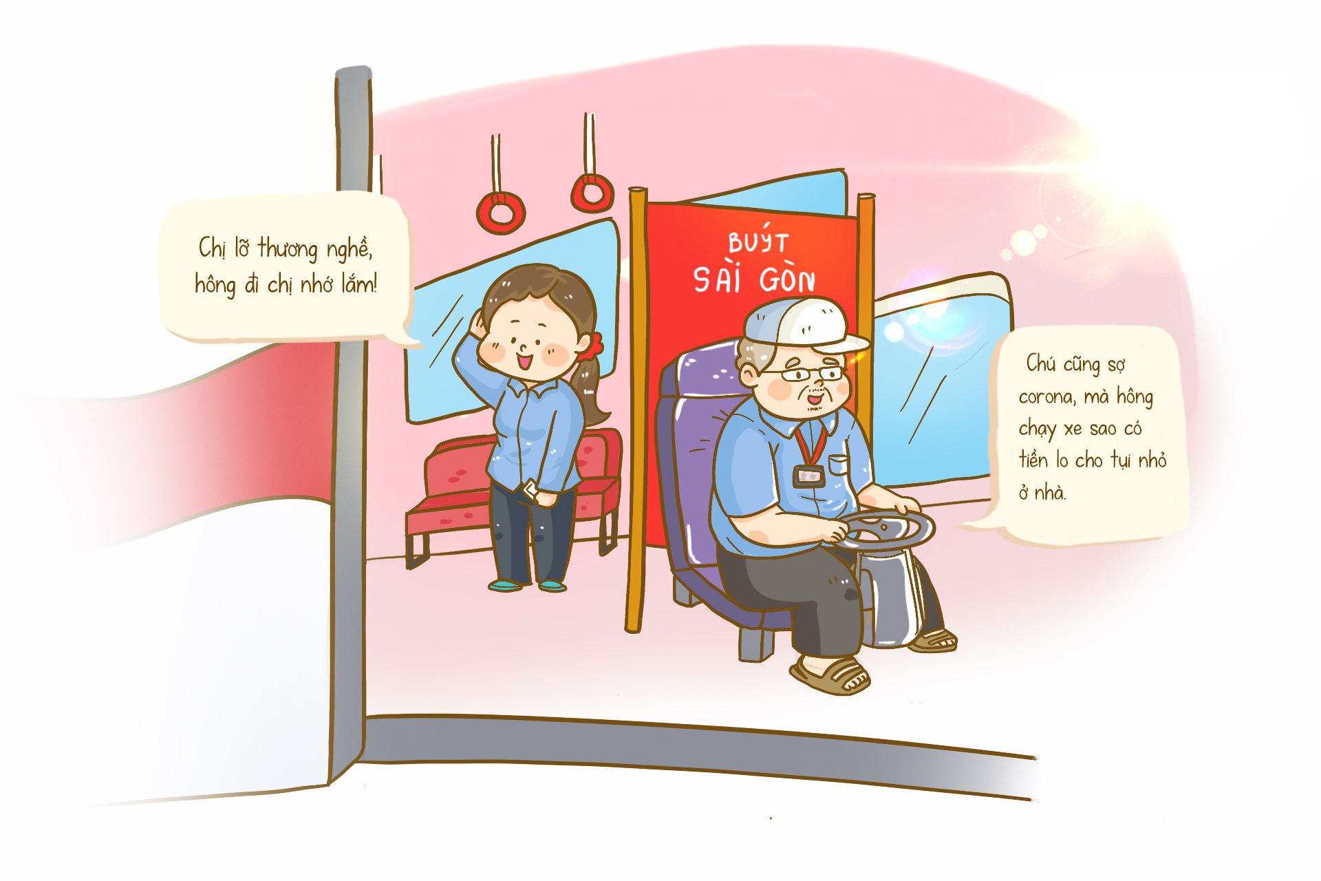 - Hồi đầu chị cũng xin nghỉ vài ngày rồi, mà tụi nhỏ nghỉ lâu quá, xe có chuyến thì vẫn cần tụi chị đi chứ, không là thiếu người. Con nó buồn cứ đòi ra trạm với mẹ, mà nghề này em biết rồi, chạm hết chỗ này chỗ nọ, cầm tiền nữa, ôm ấp nó cũng sợ nữa là, nhưng chắc tại lỡ thương cái nghề đi này rồi, ở nhà cũng buồn lắm.