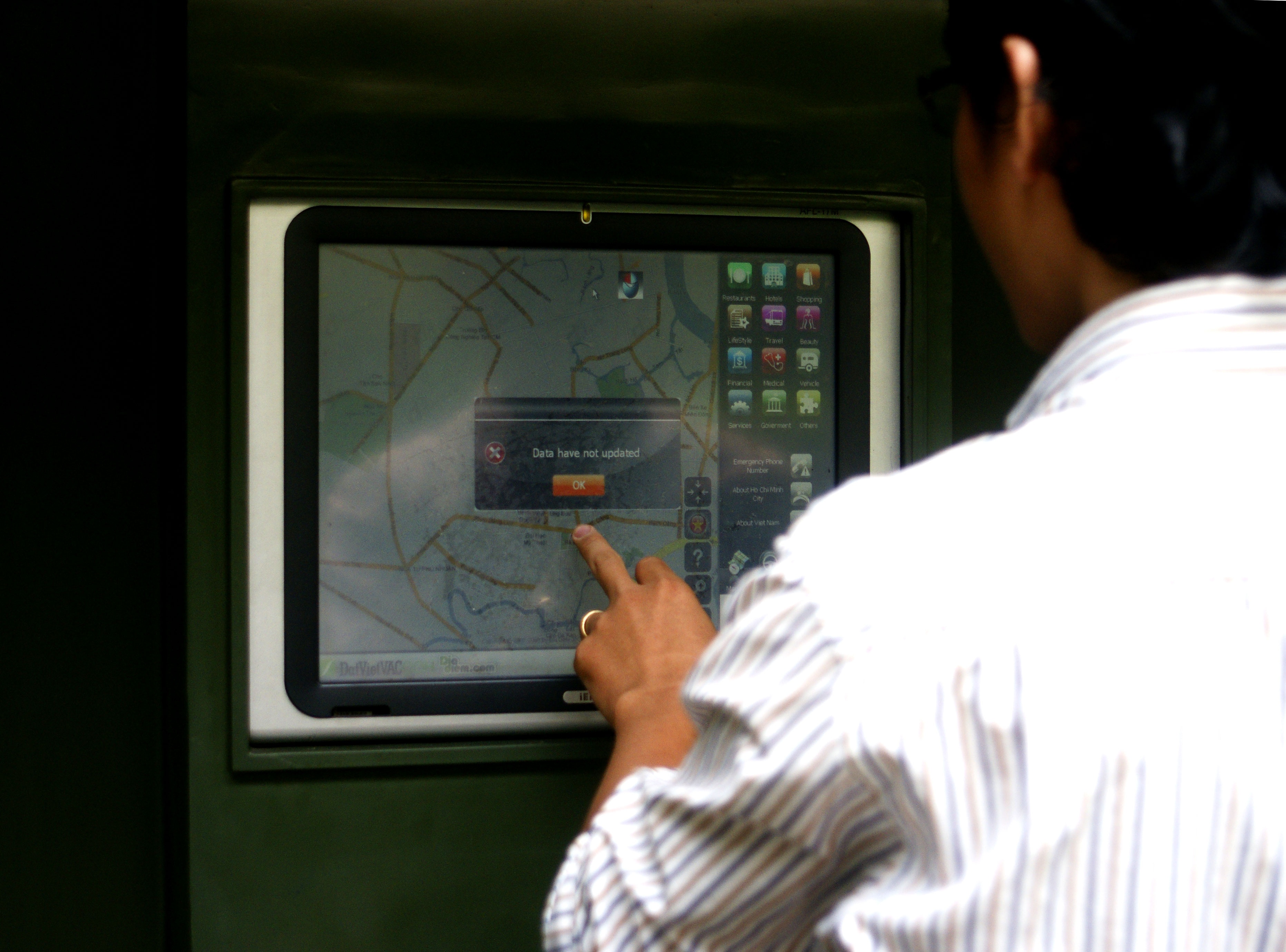 | Nhiều nơi thì bị đơ cảm ứng, dù chạm cách nào cũng không thể mở ứng dụng. Ảnh chụp trạm ở công viên 23/9 (quận 1). |