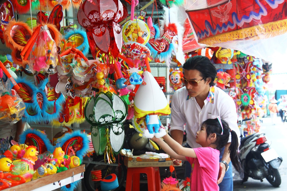Hai cha con thức dậy sớm để chạy xe từ nhà ở quận 2 xuống quận 5 để chọn những chiếc lồng đèn và những món đồ chơi ưng ý nhất. Bảo Tiên rất thông minh và luôn có những lựa chọn độc lập nên ba Trần Bảo Sơn chỉ làm nhiệm vụ… tư vấn và giới thiệu.