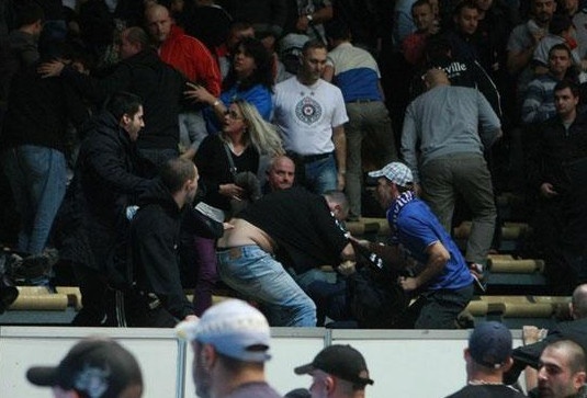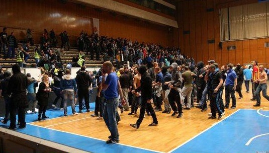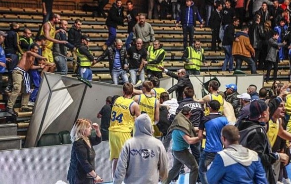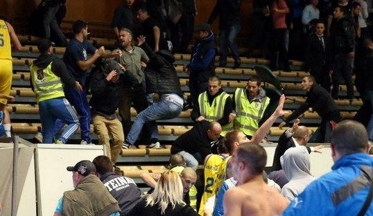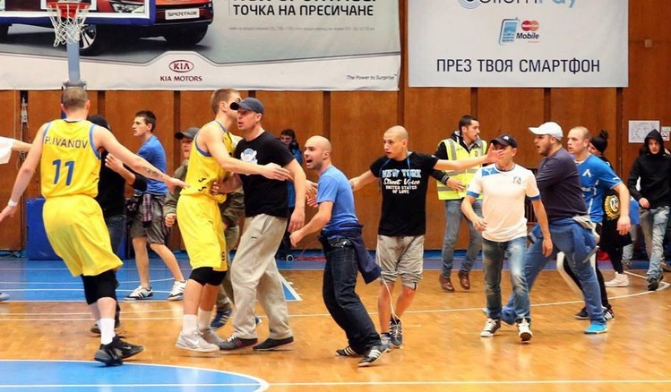 Khi trọng tài vừa nổi hồi còi kết thúc hiệp 1, cuộc so tài giữa Levski Sofia (Bulgaria) và Partizan Belgrade (Serbia) trong khuôn khổ giải bóng rổ Adriatic League, hơn 100 CĐV quá khích của cả hai đội bất ngờ lao vào tấn công nhau trên khán đài. Ngay cả các nhân viên an ninh cố gắng ngăn chặn bạo loạn bùng phát cũng trở thành nạn nhân của những cái đầu nóng.