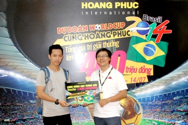 Trận chung kết 14/7 sẽ ra sao? Lịch sử 24 năm trước sẽ lặp lại hay Argentina sẽ đòi lại món nợ năm nào? Tham gia dự đoán đội vô địch World Cup 2014, các tín đồ bóng đá có cơ hội sở hữu phiếu mua sắm lên đến 15 triệu đồng do công ty Hoàng Phúc Quốc Tế tài trợ. Phiếu mua sắm được áp dụng cho tất cả các nhãn hàng cao cấp được hãng phân phối: Dr. Martens, Kappa, Superga, Ecko, Skechers, Replay, Benetton, và Sisley. Tìm hiểu và tham gia chương trình tại đây.