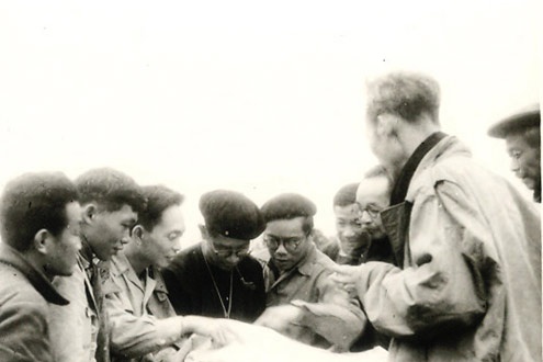| Quân đội Việt Minh lúc đó còn non yếu cả về trang bị và kinh nghiệm trận mạc nhưng dưới sự chỉ huy tài tình của Đại tướng Võ Nguyên Giáp (người chỉ tay vào bản đồ) đã đập tan âm mưu tiêu diệt căn cứ địa Việt Bắc của thực dân Pháp. Ảnh tư liệu |