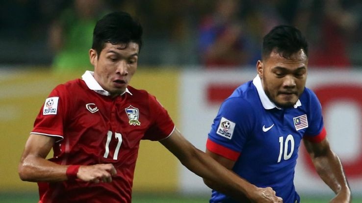 | Trận chung kết lượt về là cuộc rượt đuổi tỉ số ngoạn mục, hấp dẫn. Malaysia san bằng cách biệt thua 0-2 ở trận lượt đi chỉ sau 45 phút của trận lượt về với hai bàn thắng của Safiq Rahim và Indra Putra. Bước sang đầu hiệp 2, Safiq Rahim sút phạt tuyệt đẹp giúp Malaysia vượt lên dẫn 3-0 và 3-2 chung cuộc. Nhưng kể từ đây, Thái Lan đã vùng lên mạnh mẽ. Trong 10 phút cuối cùng, lần lượt Charryl Chappuis và Chanathip Songkrasin ghi 2 bàn, giúp Thái Lan ngược dòng ngoạn mục. Họ thua 2-3 ở trận lượt về nhưng thắng 4-3 chung cuộc để lên ngôi vô địch AFF Cup rất xứng đáng. Ảnh: ESPN. |