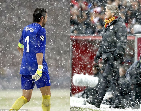 | Khi trận đấu mới diễn ra được 30 phút, một cơn mưa tuyết nặng hạt đã ập xuống sân Turk Telekom Arena. |