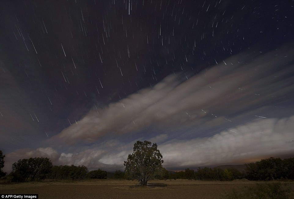 Một vệt sao băng ở Grafham, Cambridge, Anh. Mặt trăng quá sáng khiến việc ngắm mưa sao băng trở nên khó khăn. Ảnh: Matt Power |