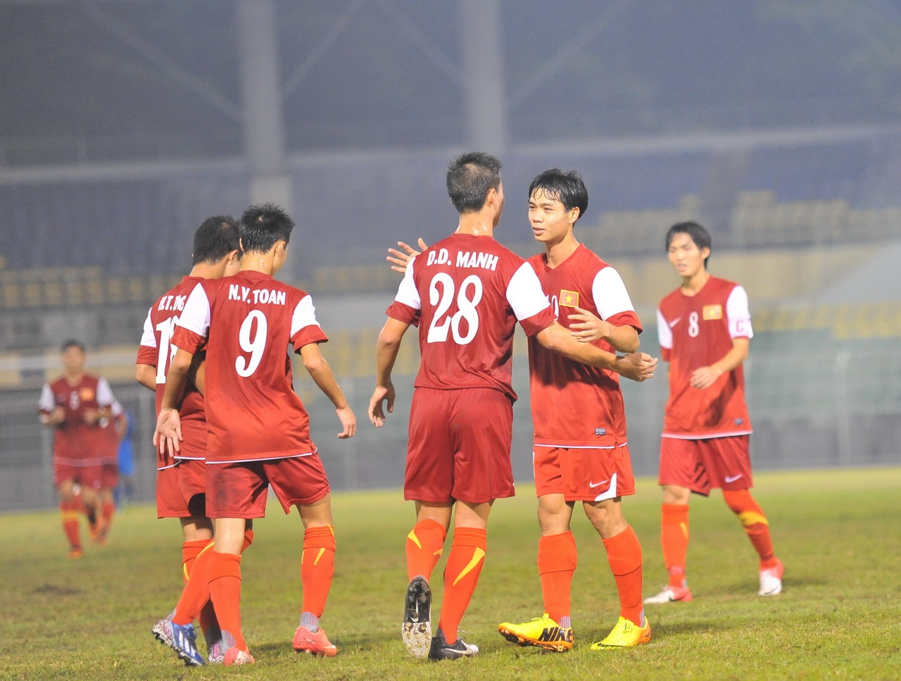 | U19 Việt Nam được ăn mừng tới 6 lần trên SVĐ Kuala Lumpur, Cheras, Malaysia. |