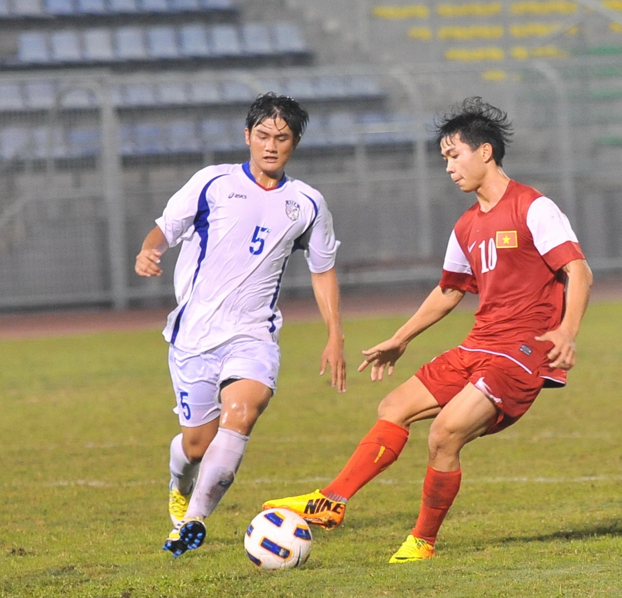| Nguyễn Công Phượng một mình vượt qua 4 cầu thủ Đài Loan từ vị trí giữa sân. |