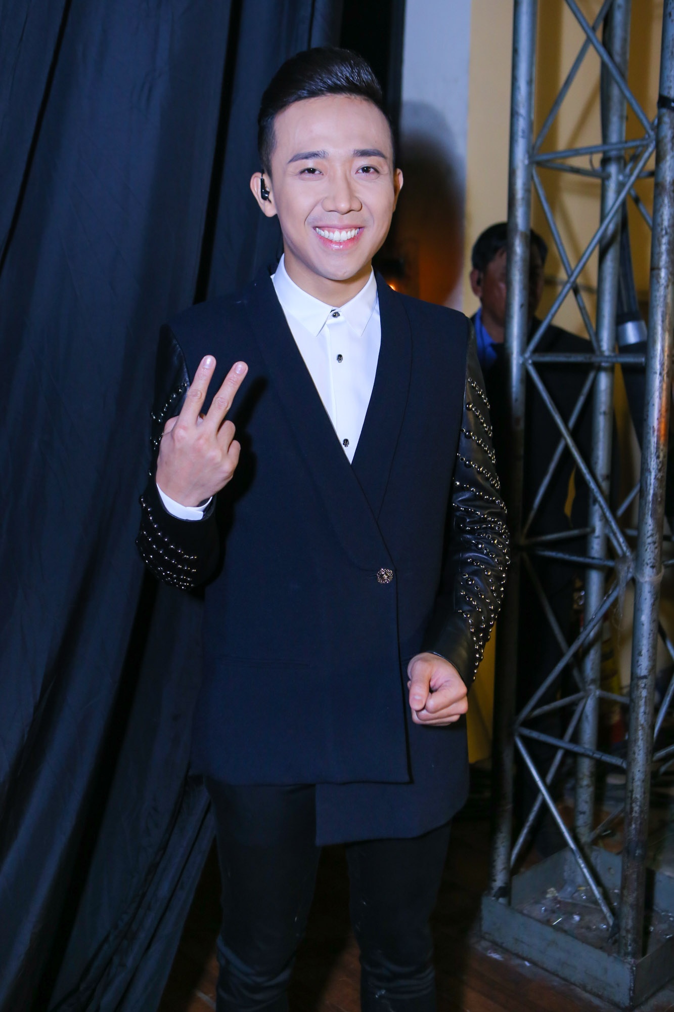 Sau khi thay trang phục, Trấn Thành mới thoải mái hơn. MC đắt show được đánh giá về gu thời trang tốt. Bộ vest cách tân của anh vừa lịch lãm vừa thể hiện được cá tính. |