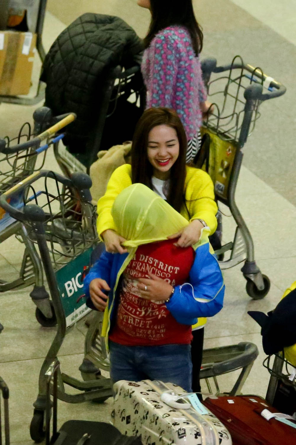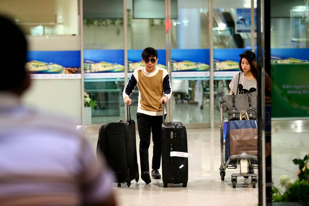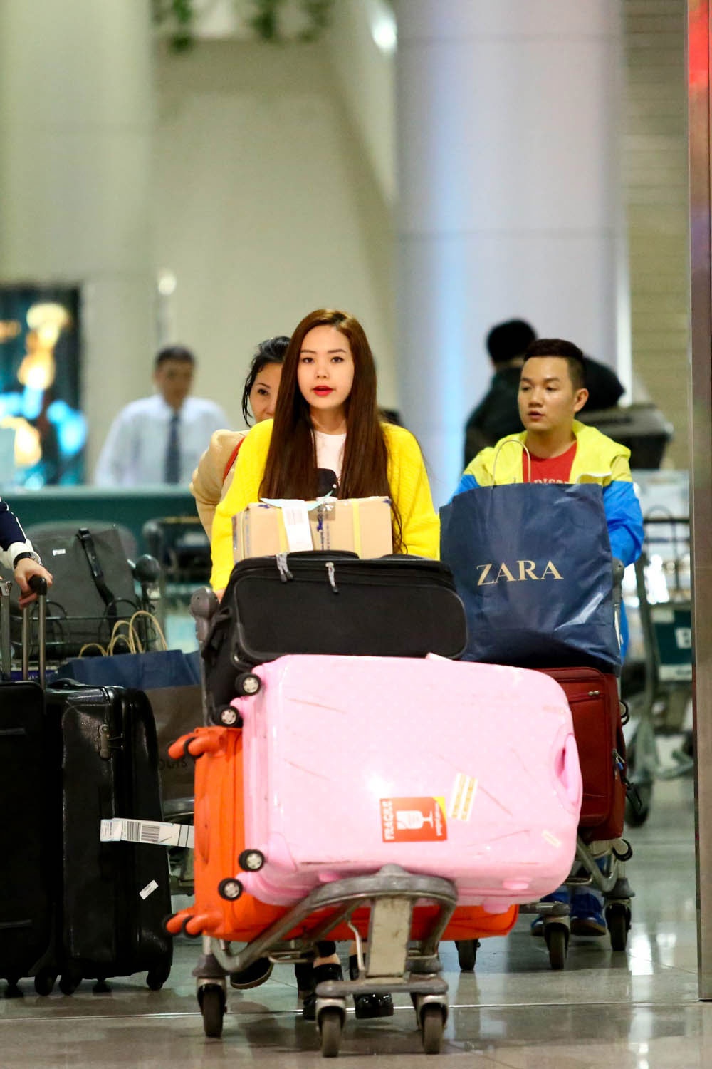 | Cả hai mang rất nhiều hành lý dù chỉ ở Hàn Quốc 5 ngày. |