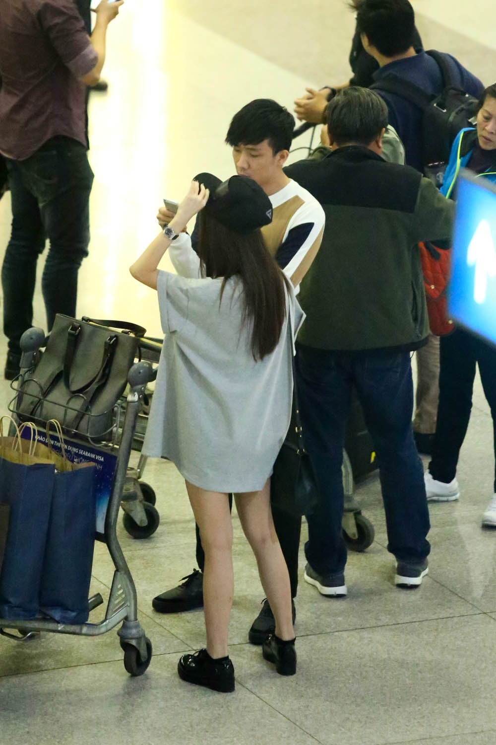 | Người đẹp diện style không quần, khoe đôi chân thon dài ở sân bay. |
