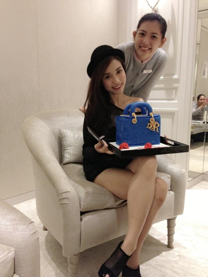 Mai Hồ cũng nhận được chiếc bánh gato ngộ nghĩnh là hình một chiếc túi Dior sang trọng.
