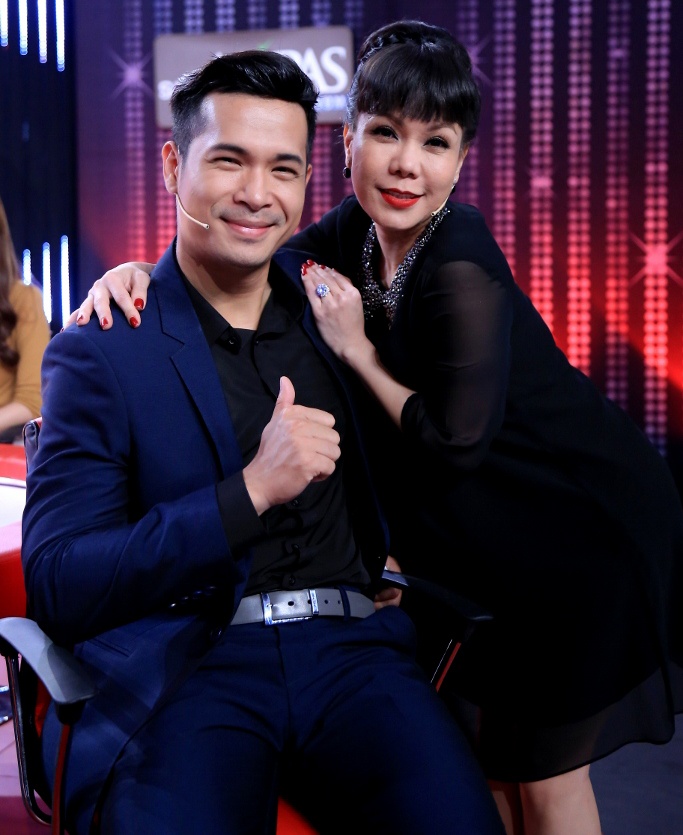 Duy Phước, con trai của diễn viên hài Duy Phương và nghệ sĩ cải lương Lê Giang, dẫn theo bạn gái tham dự chương trình. Việt Hương cho biết, khi 5 tuổi, Duy Phước đã theo chân chị lên sân khấu. |