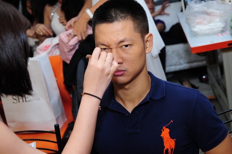 | Phía trong hậu trường, Phương Vy đang được các chuyên gia make-up chăm sóc cẩn thận. |