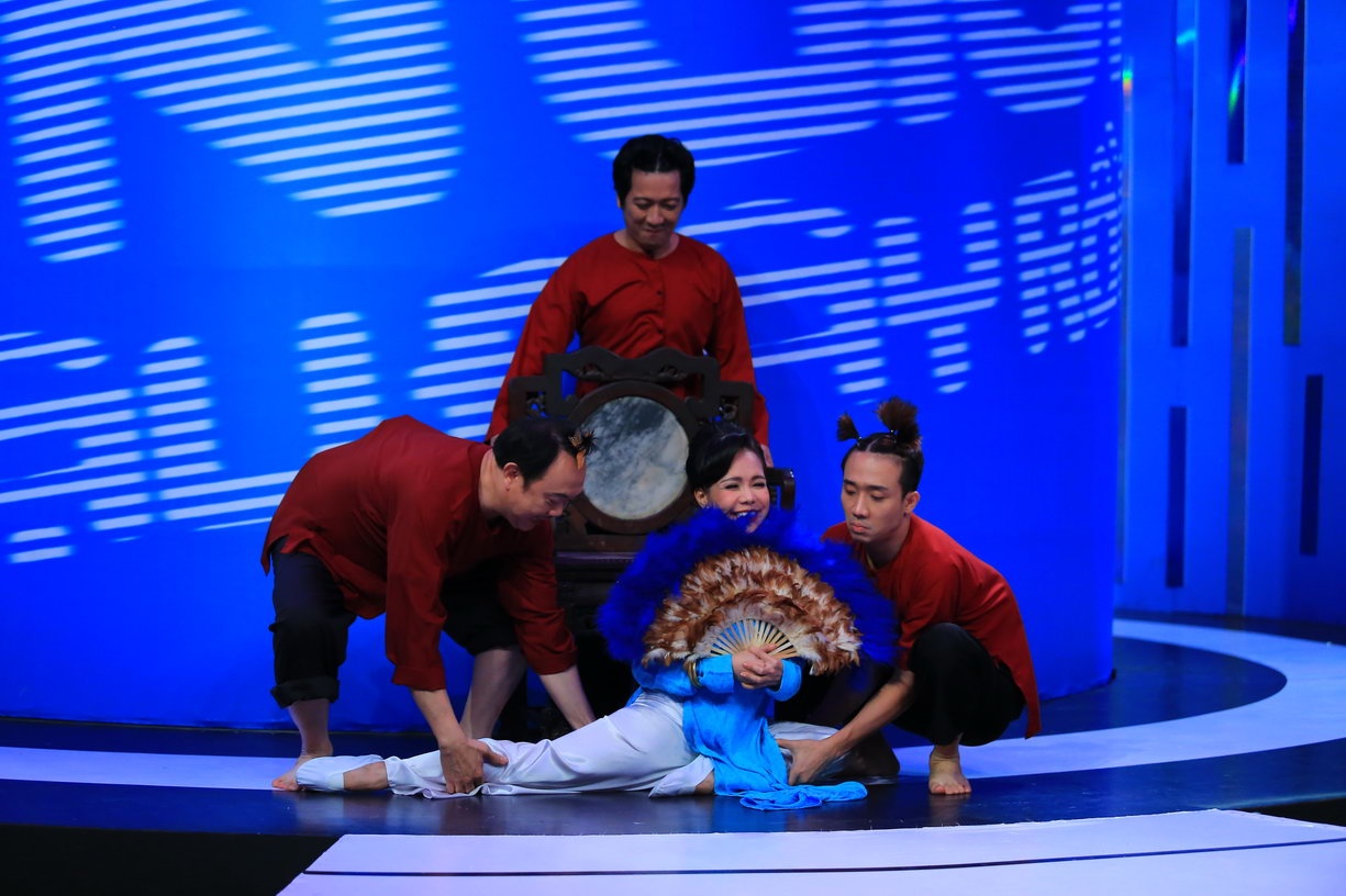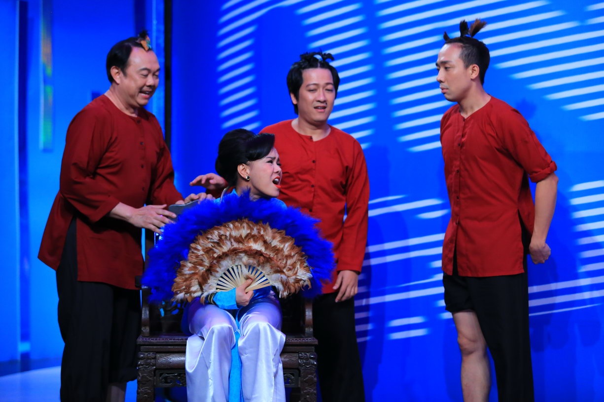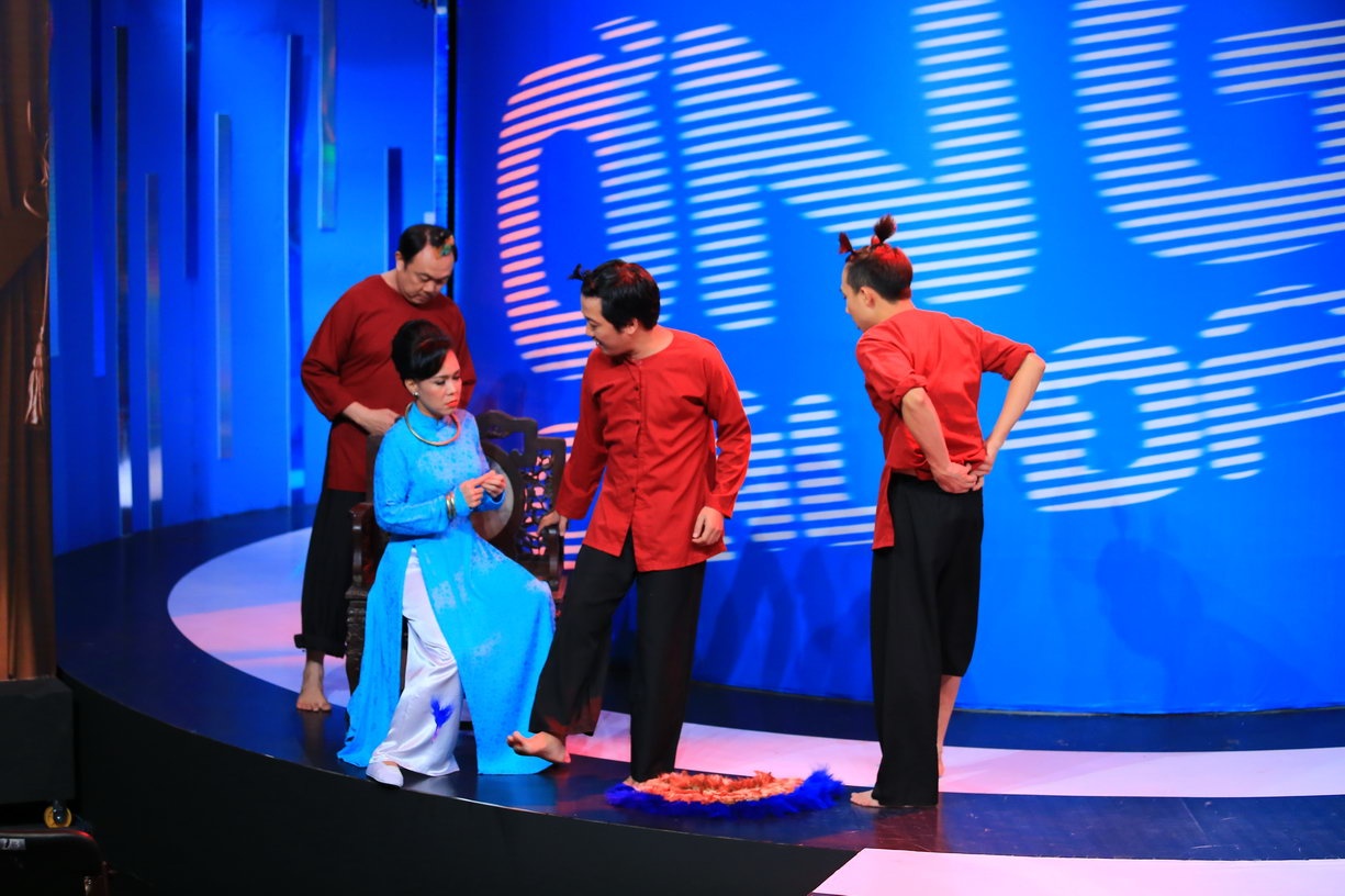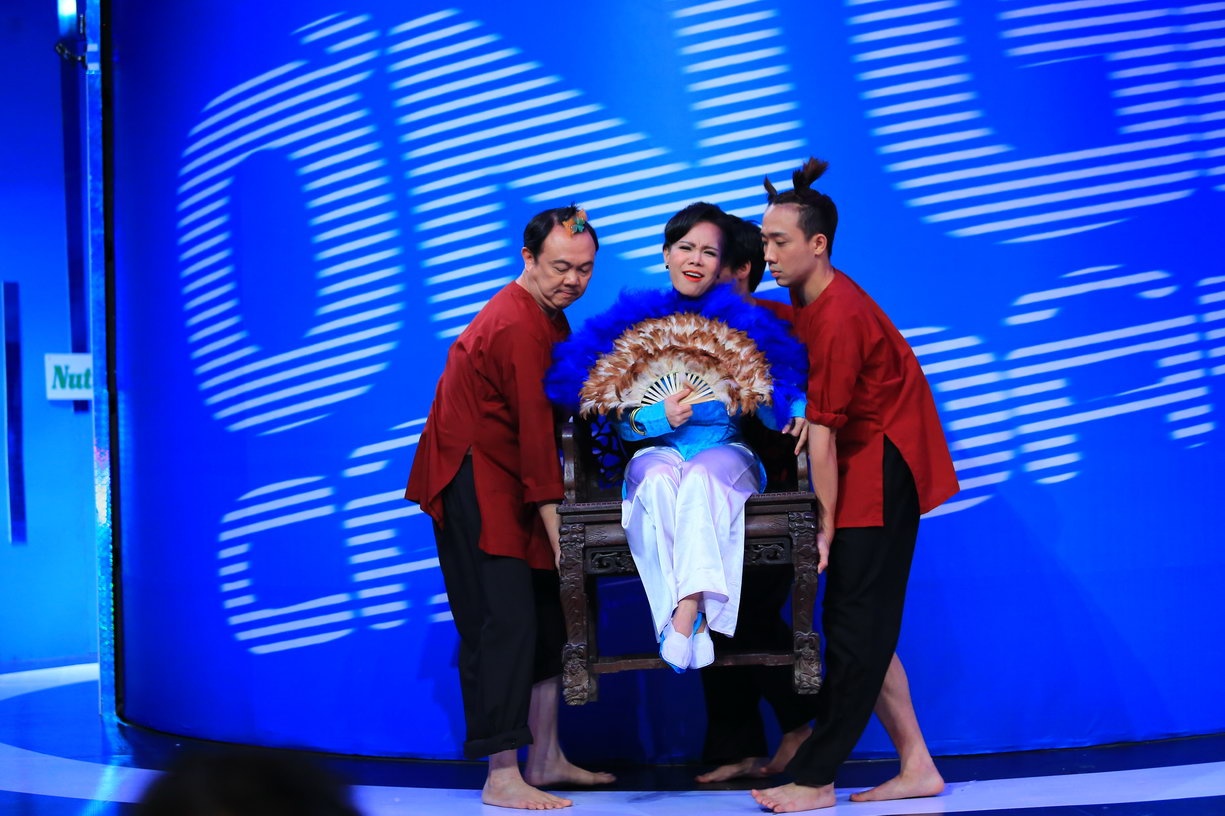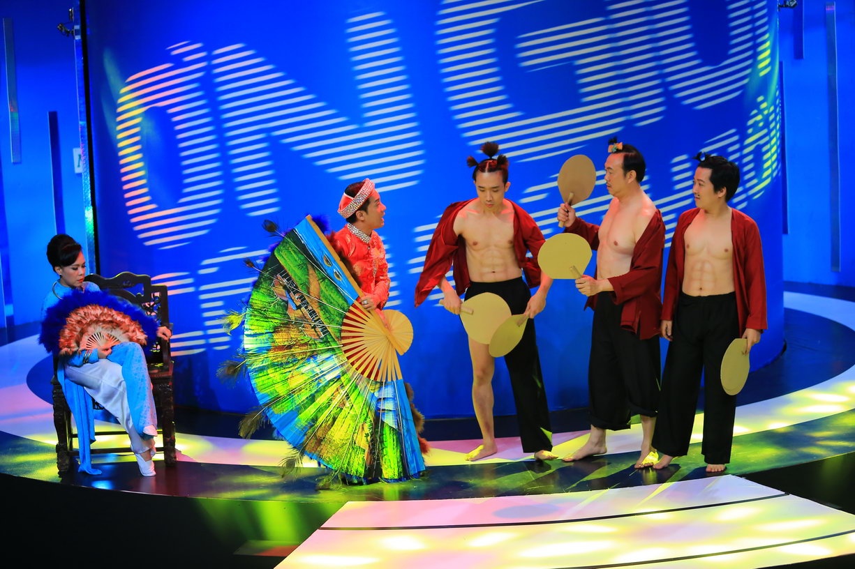 | Nhưng trước khi khoe cơ bụng, cả ba cùng Việt Hương tạo nên nhiều tình huống hài vui nhộn trên sân khấu. |