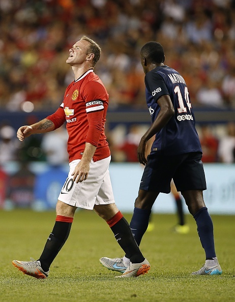 Tiền đạo Wayne Rooney có cơ hội lập công cho M.U, nhưng không tận dụng thành công. Anh tỏ ra tiếc nuối khi bóng đi ra ngoài khung thành PSG.