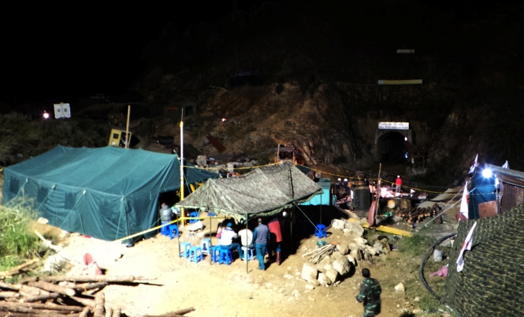 | Phía sâu trong hầm, hàng chục người vẫn đang miệt mài khoan tường, đào cát tiếp cận nơi công nhân đang chờ đợi từng giây từng phút được giải cứu. |