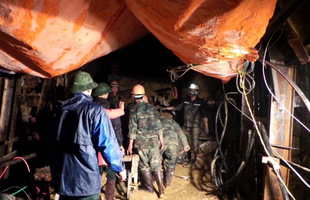 | 23h khuya 18/12, hàng trăm chiến sĩ cứu hộ vẫn túc trực tại hiện trường thực hiện công tác cứu hộ 24/24 giờ để nhanh chóng giải cứu các công nhân vẫn đang mắc kẹt trong hầm thủy điện. Một xe đèn công suất lớn được điều động đến chiếu sáng khu vực. |