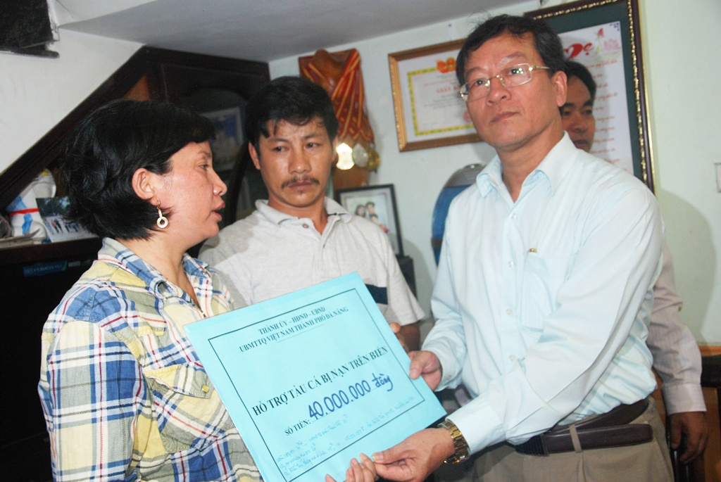 | Đại diện chính quyền Đà Nẵng đã đến thăm hỏi, động viên và hỗ trợ gia đình chủ tàu 40 triệu đồng. |