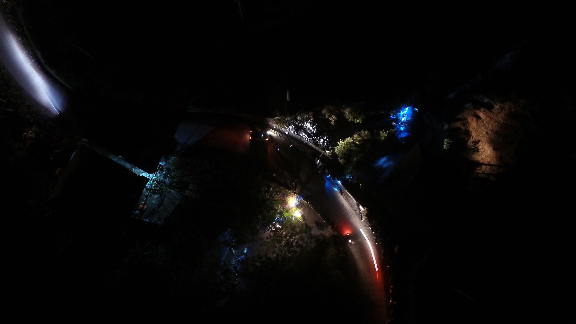 | Cảnh công nhân nạo vét bùn thải đêm 6/1 và rạng sáng 7/1 nhìn từ flycam. |