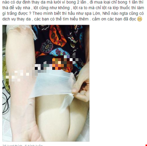Bạn NNT (sinh viên năm 2 ĐH Hutech) đã từng là một trong những khách hàng kém may mắn của kem lột da. T. mua hai lọ kem lột da với giá 800.000 qua mạng. Sau khi làm đúng hướng dẫn của người bán thì kết quả hoàn toàn không như quảng cáo. T. gọi điện thoại và hỏi người bán thì được trả lời: Đây là sản phẩm chất lượng, vì bạn không dùng và thực hiện đúng hướng dẫn nên mới không hiệu quả như thế. “Mình bức xúc về câu trả lời nên lên trang bán hàng đăng thông tin sự thật nhưng lại bị đẩy ra, lúc đó mới tìm hiểu thì biết sản phẩm này không thật sự an toàn. Vậy nên mình bỏ luôn, không dám dùng nữa mất công rước họa vào thân" - T. chia sẻ.