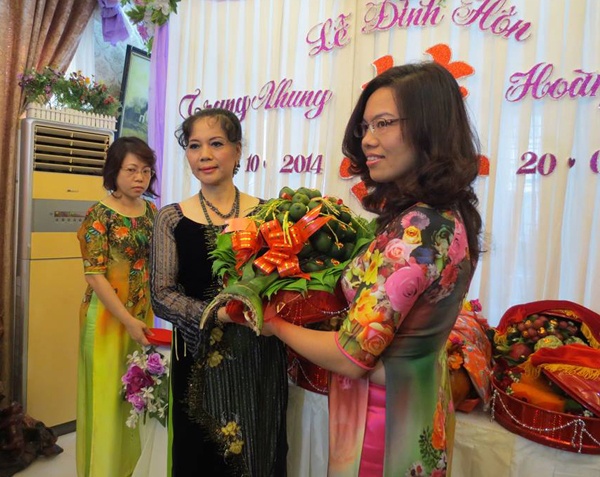 | Sáng nay, một người thân của Trang Nhung đã bất ngờ chia sẻ hình ảnh lễ ăn hỏi của nữ diễn viên và người yêu đại gia. Người đẹp phim Scandal 2 diện áo dài đỏ truyền thống có họa tiết rực rỡ bên cạnh vị hôn phu. Bức ảnh được hé lộ khiến không ít người bất ngờ vì trước đó chưa từng có thông tin nào cho biết Trang Nhung kết hôn trong tương lai gần. |