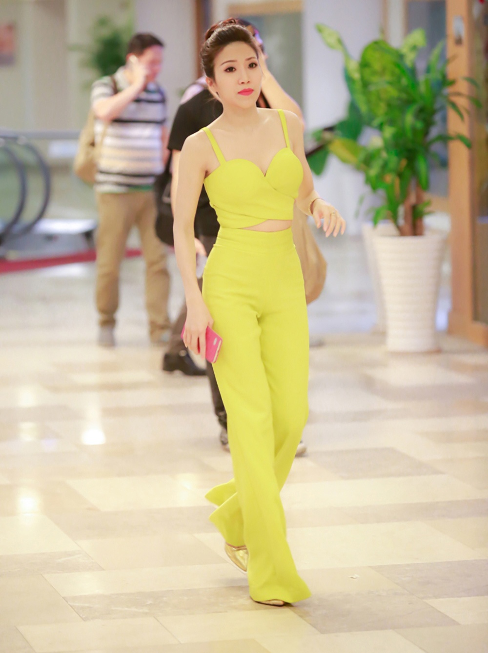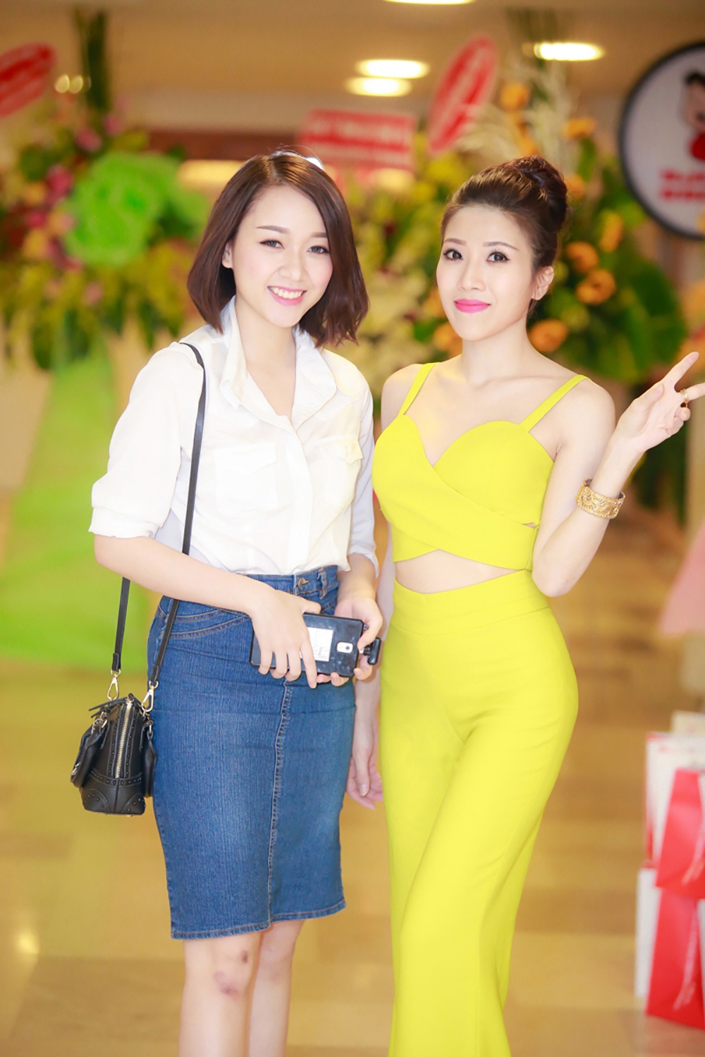 | Cô chia sẻ, sau khi xóa nối ruồi cô nhận được rất nhiều lời mời biểu diễn. Tối 11/12, cựu hot girl Hà thành chạy show biểu diễn tại 2 show diễn. Nữ ca sĩ diện bộ jumpsuit màu vàng cá tính nhưng không kém phần gợi cảm. Tại sự kiện, cô vui mừng khi gặp nữ ca sĩ Thảo Trang và Băng Di tại đây. |
