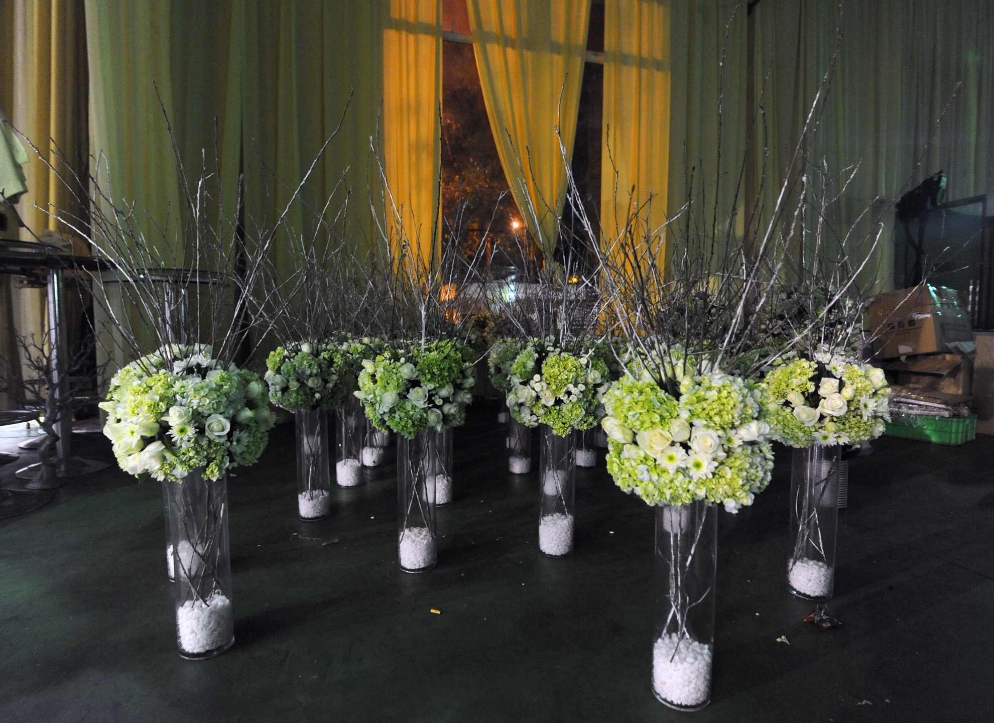 | Sẽ có 12 hàng hoa được trang trí cầu kì dẫn từ sảnh hội trường vào tận sân khấu. Gam chủ đạo của buổi tiệc sẽ là trắng bạc với chủ đề mùa đông. |