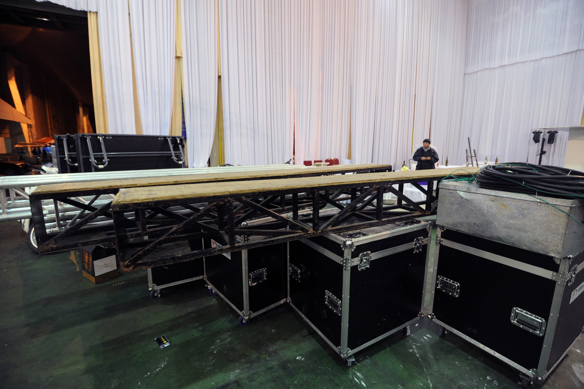| Toàn bộ khán phòng số 2 khu triển lãm quốc tế đã được dọn dẹp chuẩn bị từ sau 19h30 tối 9/1. |
