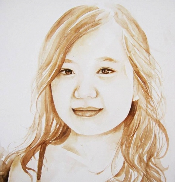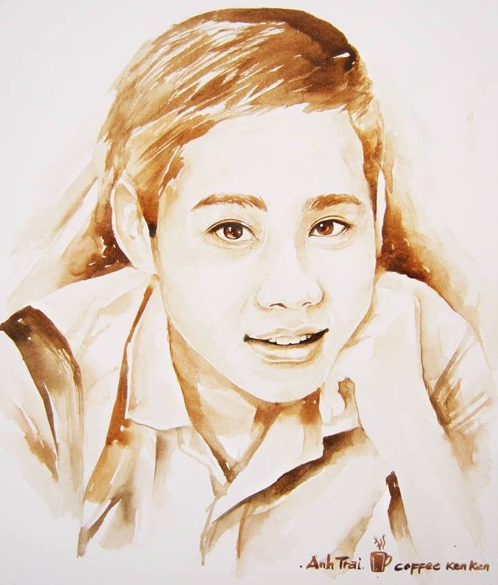 Tranh chân dung màu cà phê như thật của 9X