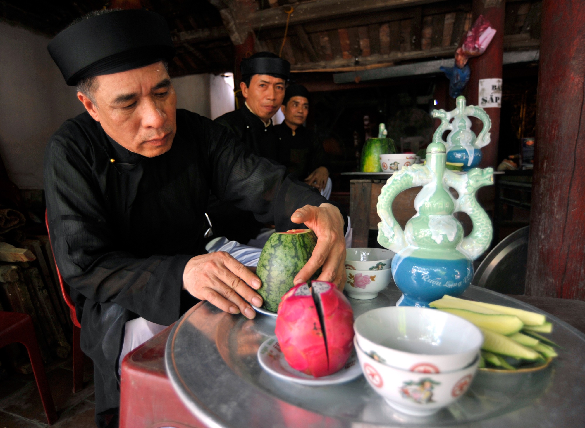 Các cụ trong làng kể, trước khi thi đấu các quân cầu uống rượu và ăn dưa hấu sẽ rất sung sức và may mắn khi vật.