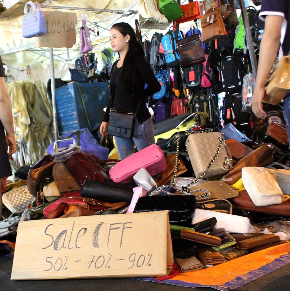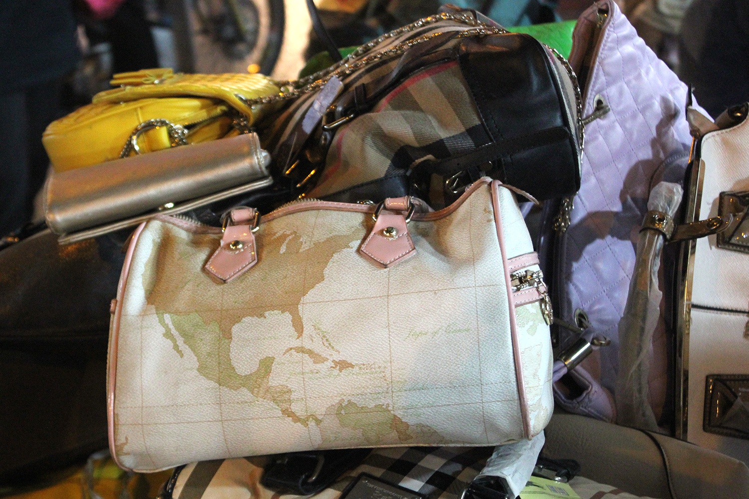 Những chiếc túi xách ngày thường treo trang trọng trong cửa hàng được đổ đống ngay lề đường trước chợ Bến Thành.