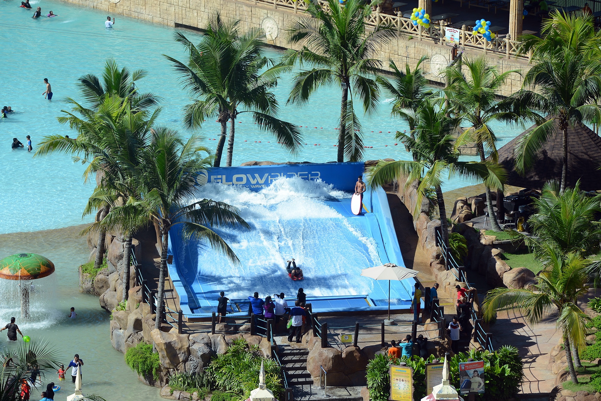 | Khu trò chơi dưới nước là công viên nước tiêu chuẩn quốc tế đầu tiên của Malaysia với hồ bơi nhân tạo lớn nhất thế giới Jeffrey’s Bay Surf Wave Pool. Cùng lúc nơi đây có thể đón tiếp hàng nghìn du khách với hệ thống khách sạn 5 sao sang trọng cùng những khu mua sắm, vui chơi tuyệt vời. |