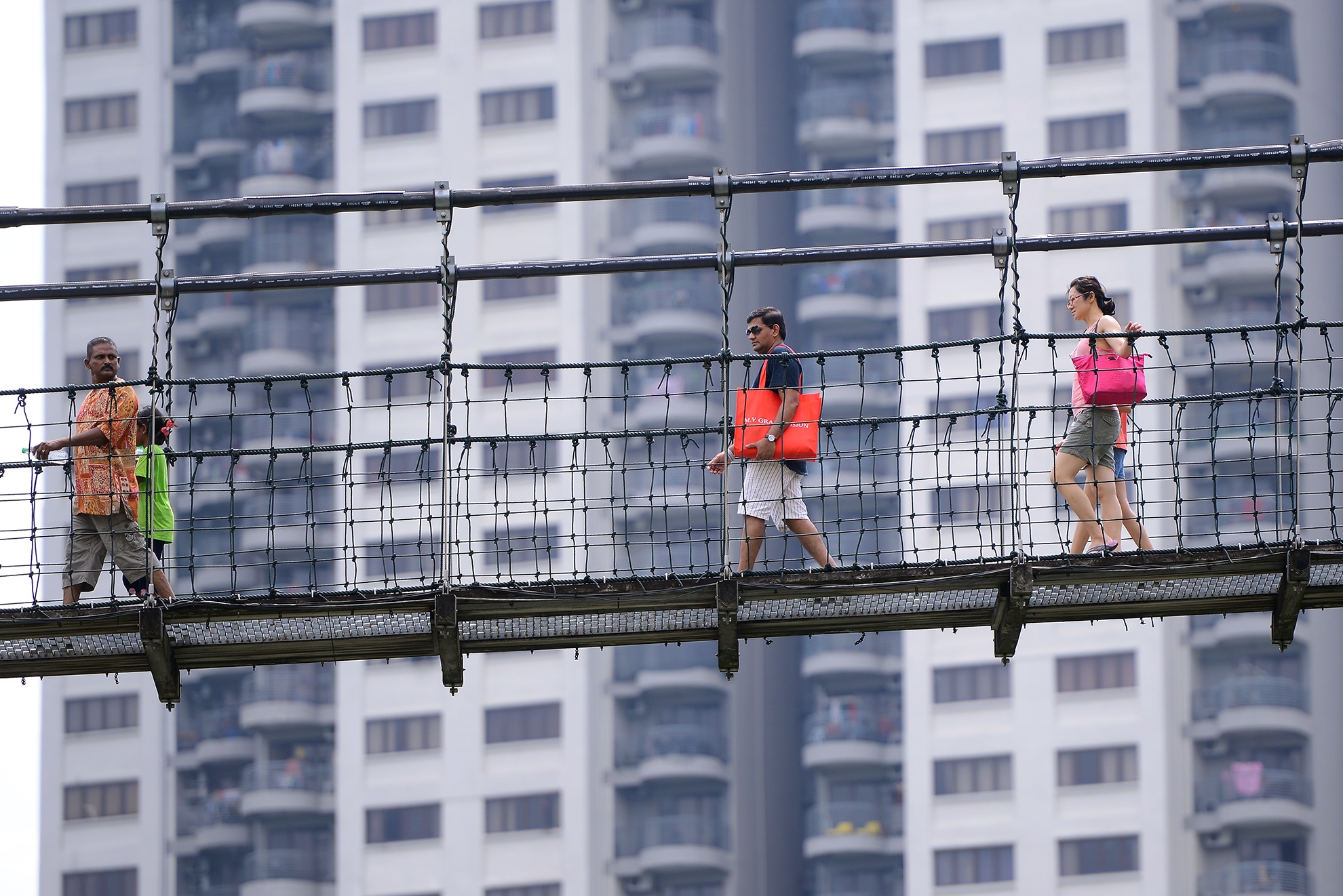 | Du khách còn được trải nghiệm cảm giác "đung đưa" trên cây cầu dây bộ hành dài nhất thế giới. Cây cầu này vắt ngang qua biển nhân tạo phía dưới và có chiều dài hơn 300m. |