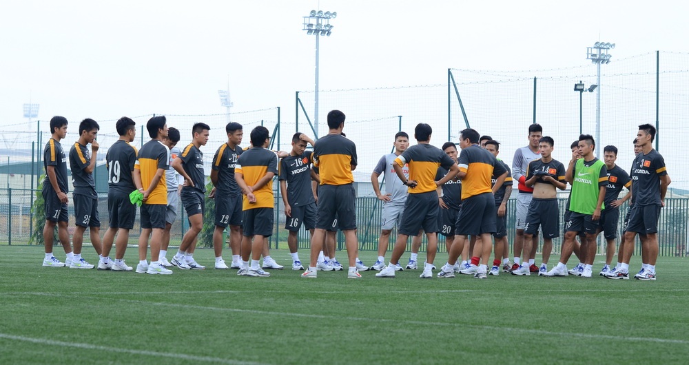 | Kết thúc buổi tập sáng 9/11, BHL nhận xét và rút kinh nghiệm cho các cầu thủ trẻ. |